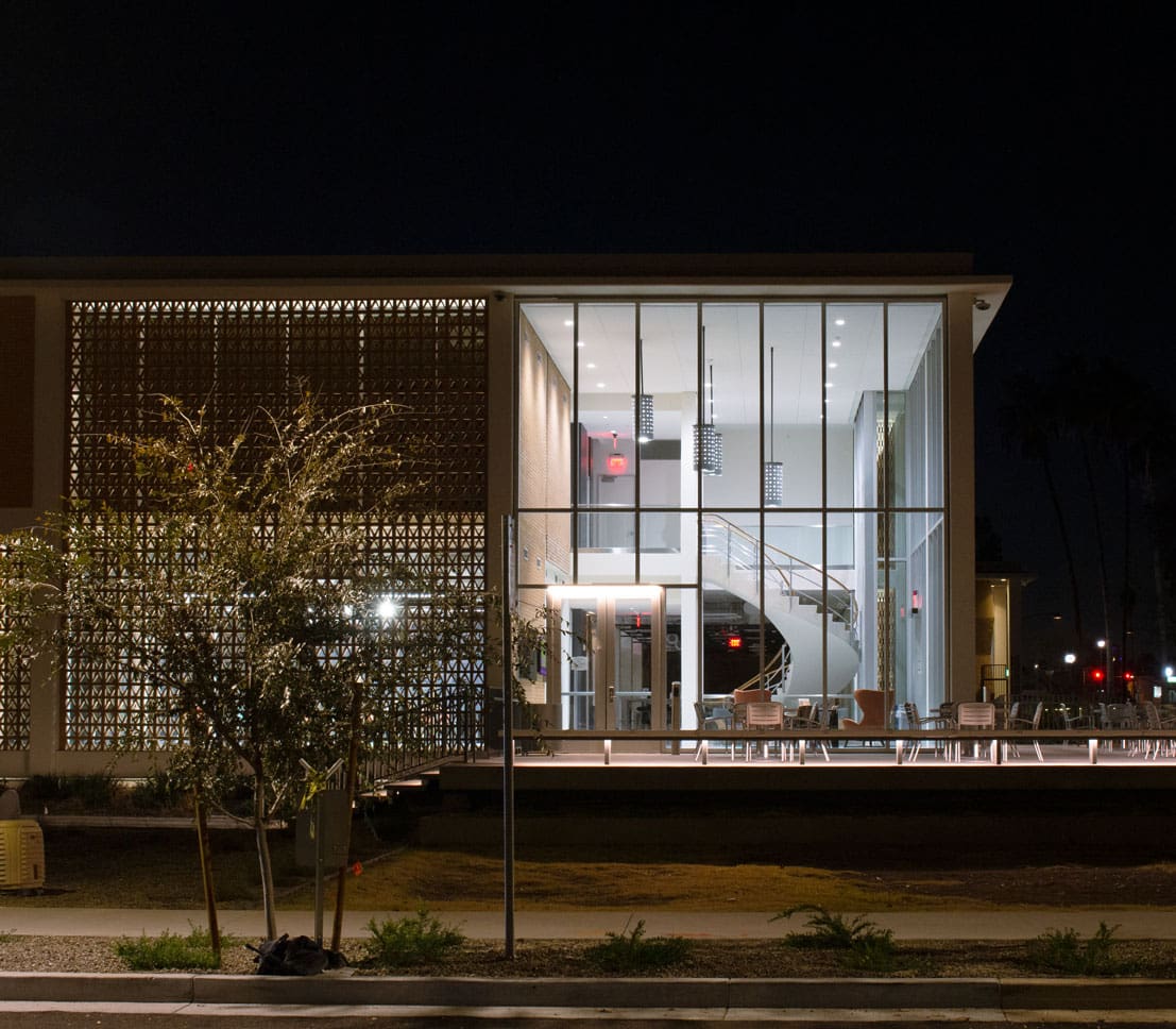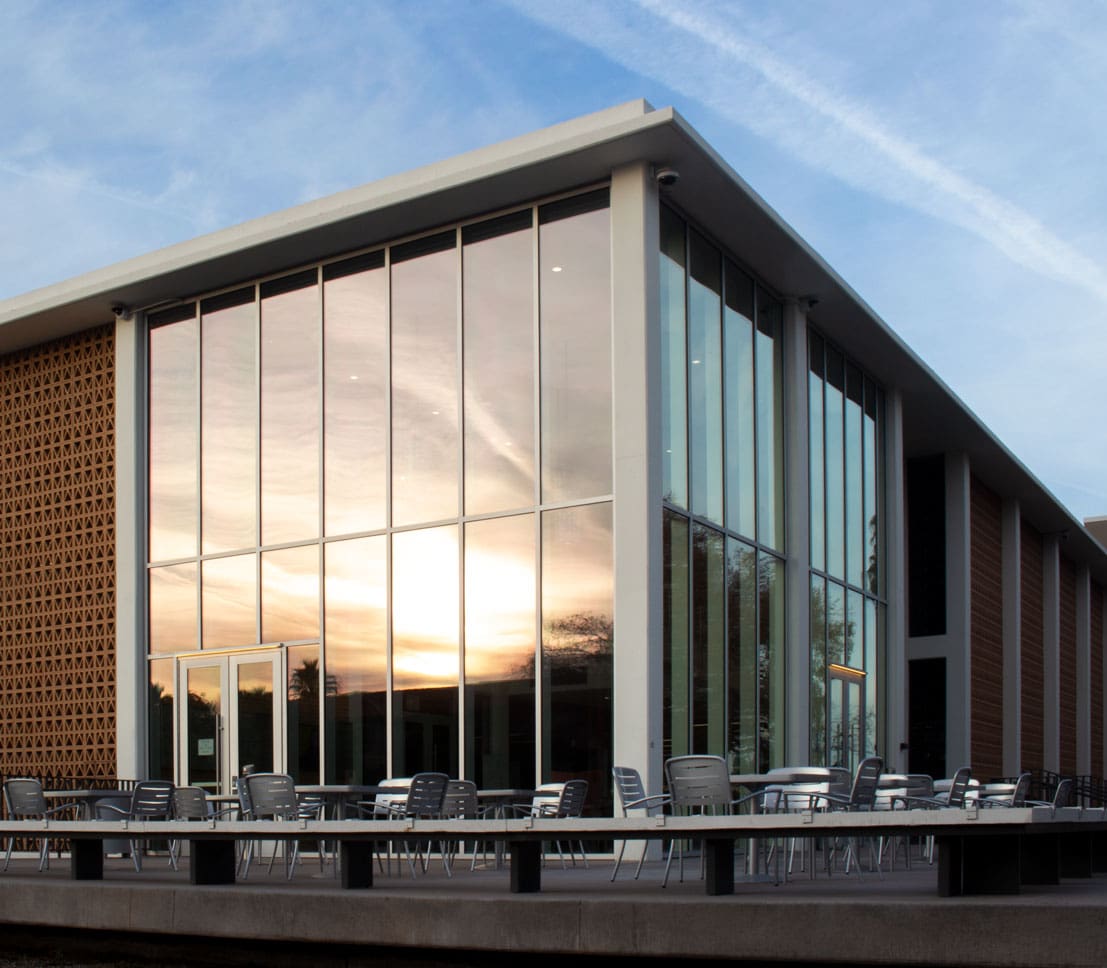 The Studios at Mesa is an exciting project supporting the local community. This repurposed mid-century building is an educational and entrepreneurial space designed to inspire and cultivate creativity. With its unique glass systems, you'll be treated to a mesmerizing facade that changes its reflective and transparent surface as the day progresses.